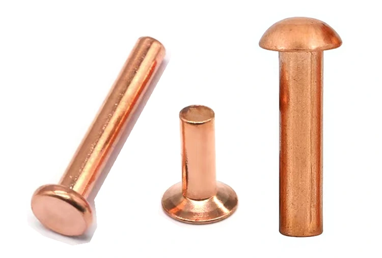 Färgen på kopparnitar är i första hand lila-röd eller röd, ett kännetecken för deras materialegenskaper. Som ett högrent kopparmaterial tenderar kopparns färg att bli mörkare röd när dess renhet ökar. Vid faktisk användning kan färgen på kopparnitarna variera beroende på ytbehandling, driftsmiljö och tid. Till exempel, efter långvarig användning eller exponering för fukt, kan en oxidfilm bildas på ytan av kopparniten, vilket gör att färgen mörknar.