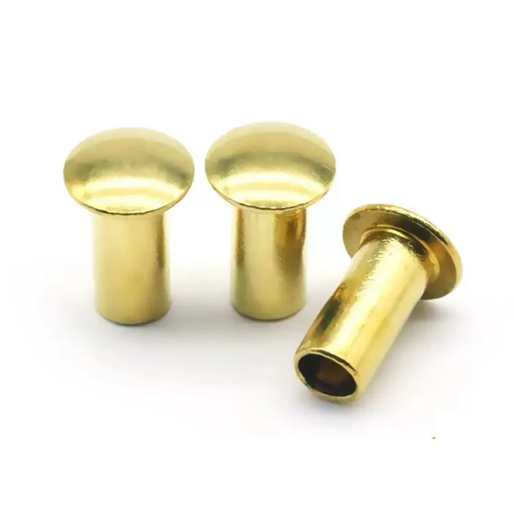 Svamphuvud Halvrörformade nitar har ett delvis ihåligt skaft, vilket möjliggör effektiv installation och pålitlig fastsättning. Nitarna är tillverkade av högkvalitativa material, som kan vara kolstål, koppar, mässing, rostfritt stål, aluminium etc,halv ihålig nits kan användas för flera applikationer, som bagage, bromsar och 3-ringspärmar och många andra.