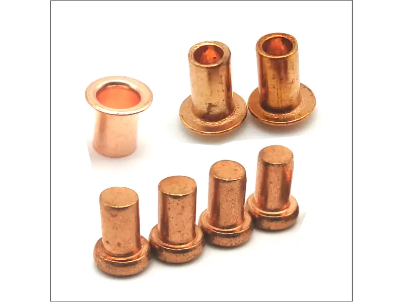 De finns i alla standardtyper. Du kan fåsolida kopparnitar, som är tuffa och används där man behöver mycket styrka i fogen, som i kraftig duk eller koppartak. Det finnshalvrörformiga kopparnitar, som är snabbare att ställa och perfekt för lädervaror eller lättare monteringar. Och det finnshela rörformiga kopparnitar som fungerar som bussningar eller pivoter. Huvudstilarna varierar också – runt huvud, platt huvud, försänkt – beroende på om du vill att niten ska synas eller sitta i jämnhöjd.